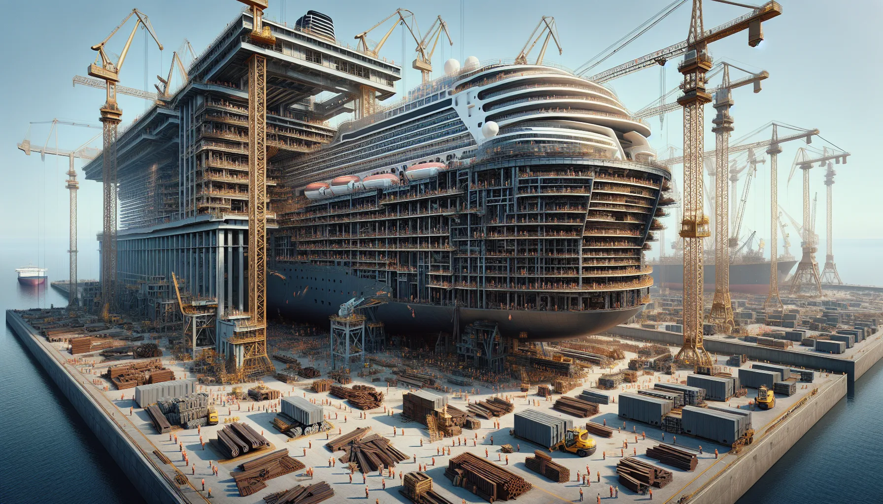 - La construction d’un navire de cette taille repose sur des processus avancés, tels que l’assemblage par blocs et l’utilisation de matériaux innovants comme l’acier haute résistance et l’aluminium léger.