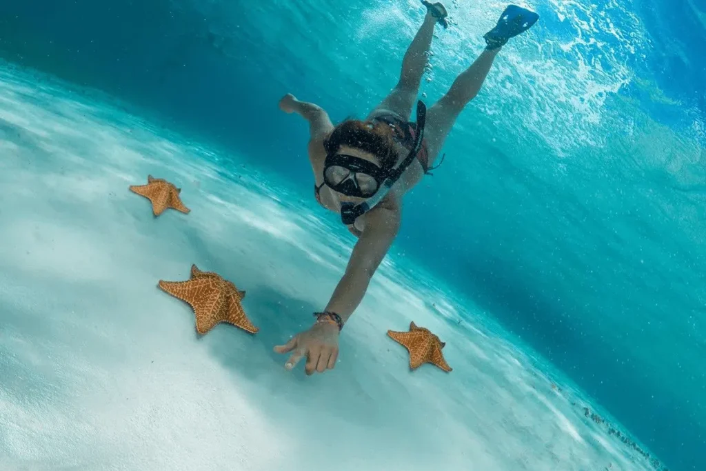 La zone d’el cielo reste le lieu de prédilection pour contempler les étoiles de mer dans leur milieu naturel. Évitez de les toucher ou de les sortir hors de l’eau afin de préserver cette espèce fragile sur le long terme. Restez dans les espaces prévus et suivez les conseils des guides pendant toute la durée du snorkeling.